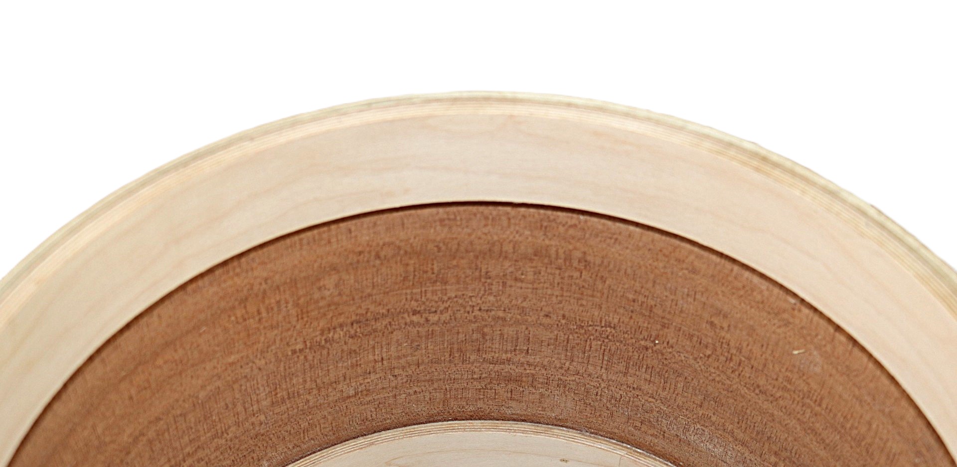 12″ diameter 6 ply mahogany shell with 8 ply re-rings 8″ tall.